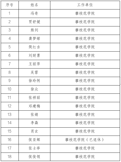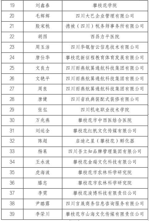 攀枝花市创业导师拟聘人员名单
