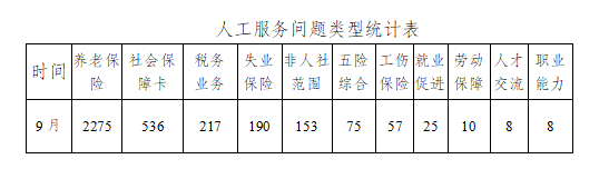 (注:因市民当次来电咨询内容可能涉及多项人社服务问题类型,导致话务系统会自动重复统计,故人工服务问题类型总量与当月人工接听量略有出入。)