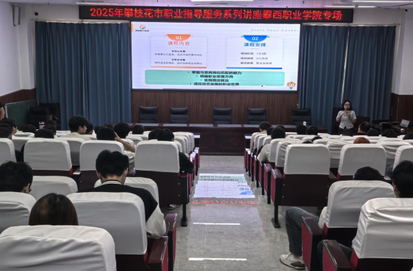 近日,以“找准赛道,加速奔跑——职业技术人才的成长密码”为主题的职业指导讲座在攀西职业技术学院报告厅成功举办。本次活动,为即将步入职场的高校毕业生提供精准就业指导,现场吸引了100余名学生积极参与。