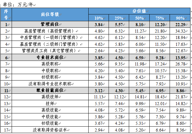 工资价位:指企业从业人员在报告期内的工资水平,包括基本工资、奖金、津贴和补贴、加班加点工资和特殊情况下支付的工资等。它在一定程度上体现了劳动力市场价格水平。