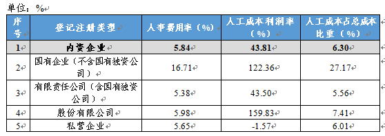 人工成本利润率:指调查时期内企业利润总额与人工成本总额的比率,反映的是企业单位人工成本取得的经济效益。