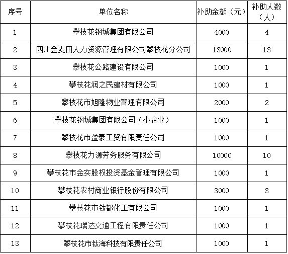 2022年度攀枝花市市本级第七批一次性扩岗补助企业及金额公示